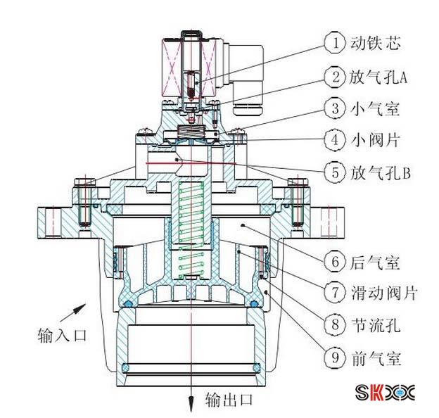 脉冲电磁阀工作原理:通过导线将电磁阀体内线圈输入正向脉冲信号,线圈产生的工作磁通,使动芯吸合,打开阀门。当停止正向脉冲信号输入时,动芯释放,动芯在弹簧力的作用下回复到初始状态,关闭阀门。